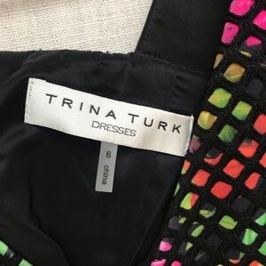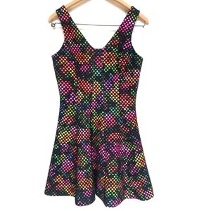 Trina Turk Fit and Flare Dress 6 Rainbow Colors On Black Texture Sleeveless