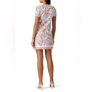 Keywords: rainbow, floral, full zip, shift, sheath, cap sleeve, mini dress, preppy, pastel, maximalist