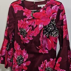 Trina Turk Floral Print Long Sleeve Dress Women’s Size 6 Red Pink Black