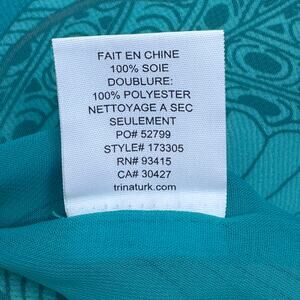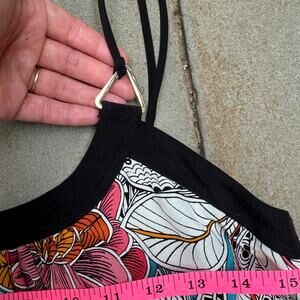 Trina Turk Floral Silk Long Midi Dress Spaghetti Strap Black White Aqua Size S
