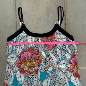 Trina Turk multicolor floral long flowy midi dress. Size S (small). 100% silk main (100% polyester lining). Adjustable spaghetti straps. Silver-toned hardware on straps. Cut-out design on back. Great for lots of occasions, can be dressed up or down. In very good pre-owned condition, no major flaws. See photos for more details and measurements taken.