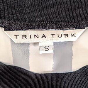 Comfortable long-sleeve black pullover top with floral and stripe print from Trina Turk.