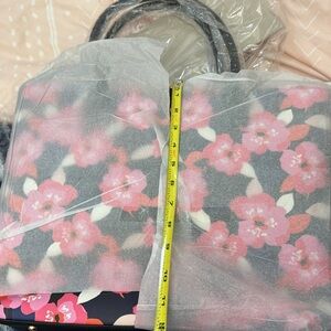 Stylish Trina Turk tote bag with a floral design. Features pink and gray colors. Great for a business woman or mamma with kids who has to carry a lot and lab top does fit as well.