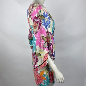Trina Turk Floral Tunic Swimsuit Cover Up Stretch 3/4 Sleeve Lace Up V-neck
