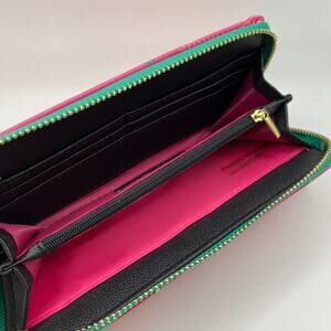 Trina Turk Floral Zip Around Wallet Clutch Hot Pink Kelly Green Cottagecore NWT