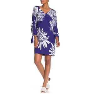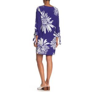 A lightweight satin shift dress features trendy split sleeves & a chic floral print for effortless charm.