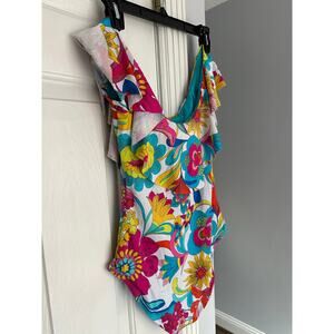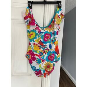 Trina Turk Fontaine Off The Shoulder Ruffle One Piece Swimsuit Sz 10 READ