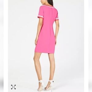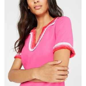 Tiered, multicolored fringe styling adorns the neckline and cuffs of this effortless shift dress from Trina Turk.