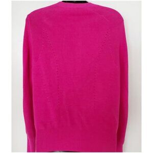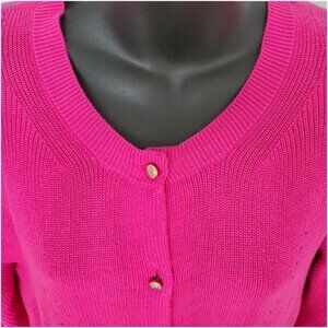 Trina Turk Fuchsia Classic Crewneck Button-Down Sweater Size M Preppy Coquette