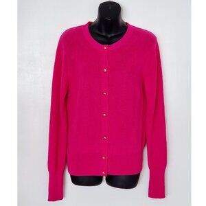 Trina Turk Fuchsia Classic Crewneck Button-Down Fine-Gauge Knit Sweater Gold Accent Buttons - Size M
