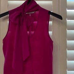 NWOT. Elegant 100% silk sleeveless top. Bold and vibrant pink hue. Features a built in tie around neck for versatile looks. Perfect for creating a color-block statement piece in neutral office blazer-suit combos, or adding a dramatic element to classic pencil/A-line skirt. Never worn.