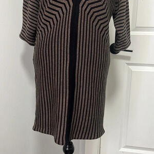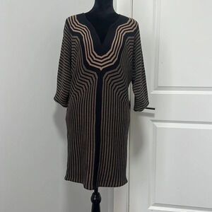 Trina Turk Gallivant Black Striped Dolman Sleeve V-Neck Sweater Dress size Small