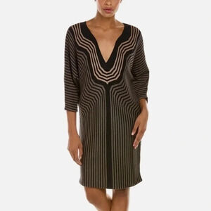Trina Turk Gallivant Patterned Sweater Dress in Black Tan Size Small