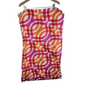 Trina Turk's geometric pattern pillow cover adds a pop of color to any room. Measuring 22.5 x 36.5 inches, it features a vibrant blend of pink and orange, made from premium cotton.