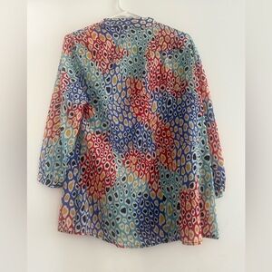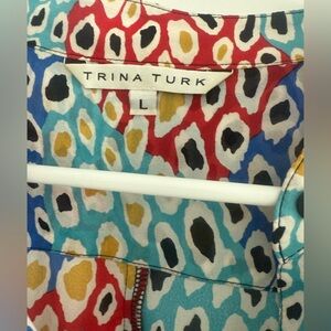 Trina Turk Geometric Vibrant Retro Print Silk Blend Button Down Blouse Size L
