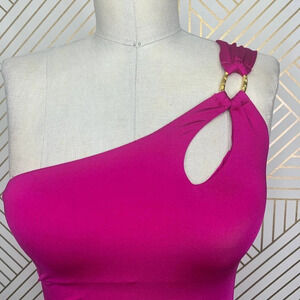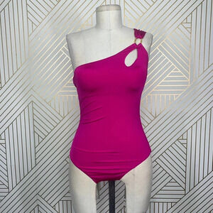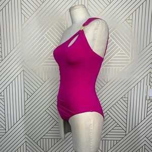 Trina Turk Getaway Solid One Piece One Shoulder Swimsuit Berry Pink Size US 2
