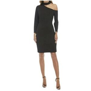 EUC worn once Trina Turk black choker neck sexy cocktail dress Gigi long sleeve back zip holiday size 2 freshly drycleaned