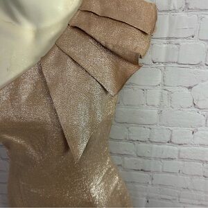 Trina Turk Gold Shimmer one shoulder embellished formal mini dress glam
