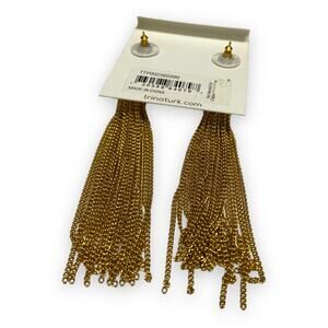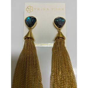 Trina Turk Gold Tone Tassel Earrings Semi Precious Stones Pierced NEW