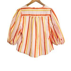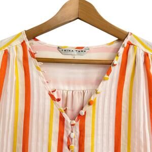 Trina Turk Gratitude Top Puff Sleeve V-neck Size Small Orange Yellow Stripe