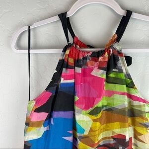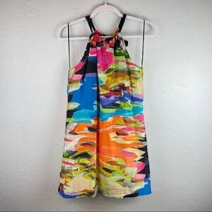 Trina Turk Halter Neck Multicolor 100% Silk Mini Shift Dress Women's Size 2