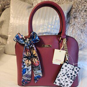 Trina Turk Handbag Wine-colored with Black and white wallet Set 4 pc. total