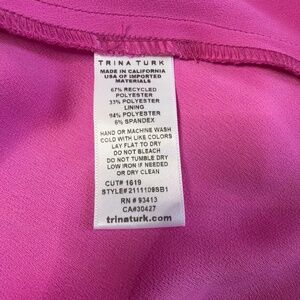 lovely layers and pleating combined to create this unique design from Trina Turk. Elastic peplum waist can be tucked in or out. In excellent new with tags condition.