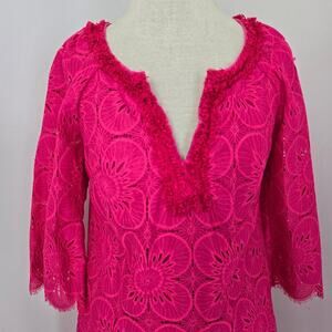 Trina Turk Hot Pink 3/4 Sleeves V Neck Lace Lined Mini Dress Sz 0 (645)