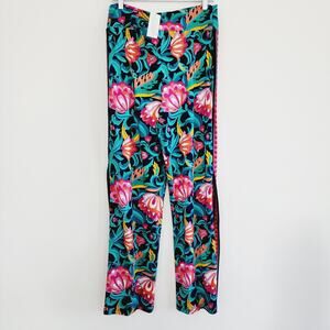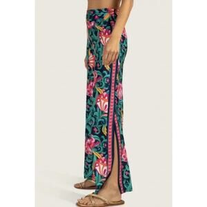Trina Turk India Garden Swim Jersey High Rise Pant Swim Cover-Up Culottes Teal Blue Green & Pink Paisley Floral Print Size Large