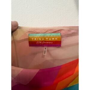 Chic & Flattering, one shoulder top exclusive 25th anniversary rainbow stripe print.