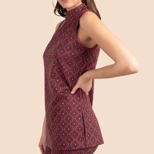 Trina Turk 'Isha' Mock-Neck Sleeveless Jacquard Tunic Top, Phlox Multi