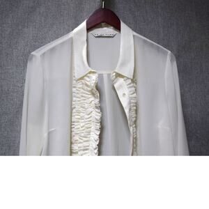 Trina Turk Ivory Ruffle Front Button Down Blouse Size S