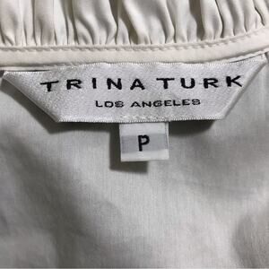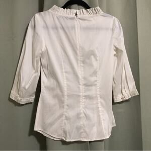 Trina Turk Ivory Ruffle Neckline 3/4 Length Blouse