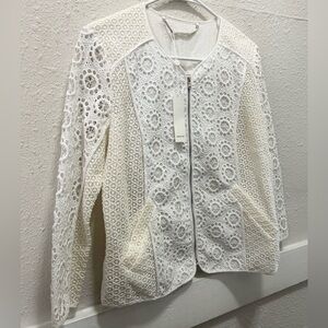 Trina Turk Ivory & White Eyelet Lace Zip-up Jacket NWT Size 6