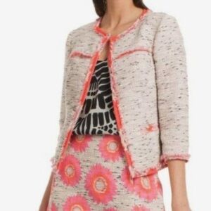 Trina Turk Jacket Women 2 Ivory Black Coral Pink La Brea Texture Jacquard Fringe