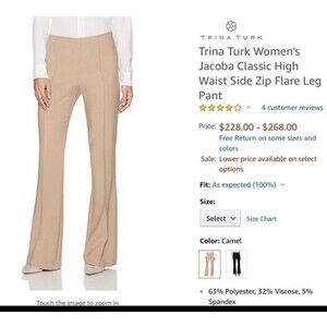 The Trina Turk Jacoba Pintuck Flare Leg Side Zip Tan Pant is a stylish and versatile dress pant perfect for various occasions such as travel, casual outings, workwear, and business meetings. Made in the USA, this pant features a flattering mid-rise waist and a classic fit with a flat front design. The pleated accents and flared leg style add a touch of sophistication, while the stretch fabric ensures comfort and ease of movement. The beige color and solid pattern make it a timeless wardrobe staple that can be worn year-round.