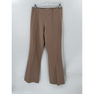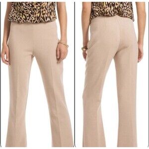 Trina Turk Jacoba Pintuck Flare Leg Side Zip Tan Pant USA Made Measures MEDIUM