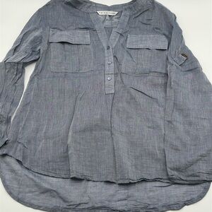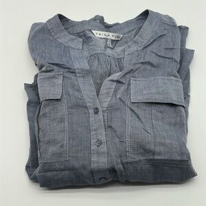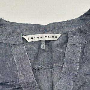 The Trina Turk Jemison Blouse is a stylish and elegant piece designed for women in size small. Made from a luxurious silk blend material, this blouse comes in a beautiful blue color, adding a pop of sophistication to any outfit. The brand Trina Turk is known for its high-quality and trendy designs, making this blouse a perfect choice for those looking for a chic addition to their wardrobe. 6.40