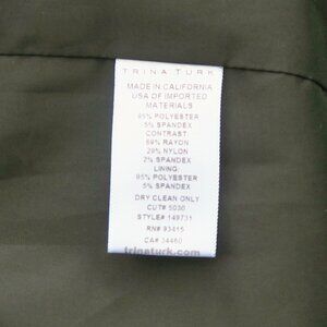 A comfortable and fashionable jersey dress from Tina Turk. This piece has a bold geometric print with black sleeves. The material is a stretchy polyester blend while the body of this dress is fully lined -- making it all day comfortable! Marked a size 4 but check the included measurements below to ensure the best fit for you. Good pre-owned condition.