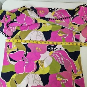 Trina Turk Kahe One Shoulder Floral Silk Top With Ruffle Overlay *Pink Spots* M