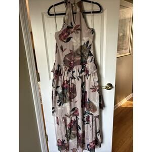Trina Turk Kahlo Floral Print Silk Layered Maxi Dress Sleeveless XS Taupe Win