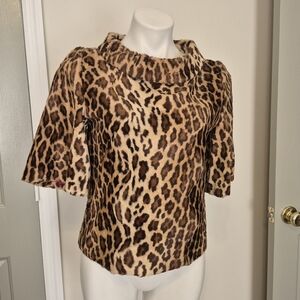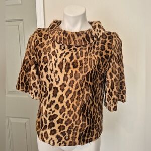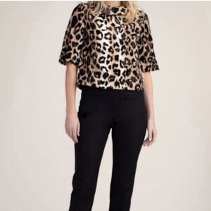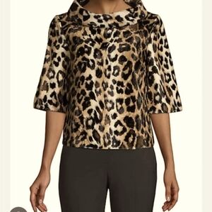 Trina Turk Kailee Faux Fur Leopard Animal Print Boxy Fit Short Sleeve Top(XS)