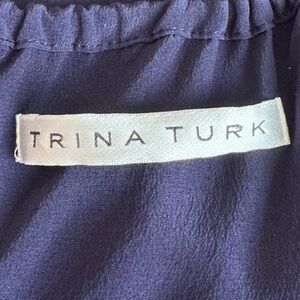 Trina Turk Kearney Silk Hi-Low Fringe Midi Dress in Navy Blue