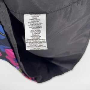 Shell: 98% polyester. 2% spandex Lining: 96% polyester, 4% spandex