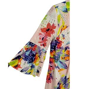 Trina Turk Knee Length Eyelet Dress Rainbow 3/4 Bell Sleeve Vacay Summer Beach 2