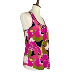 Trina Turk Kokua Tank 100% Silk Racerback Floral Top Resortwear Size Small