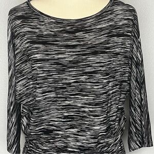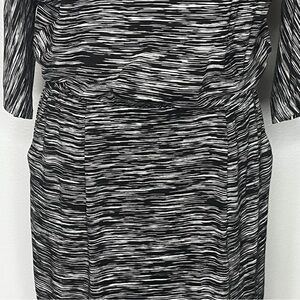 Trina Turk LA Lawson Abstract Slouchy Jersey Dress Medium Black Gray Midi