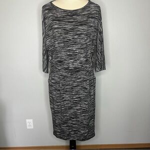 Trina Turk LA Lawson Abstract Slouchy Jersey Dress Medium Black Gray Midi Pocket