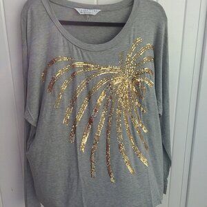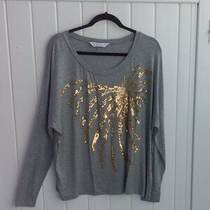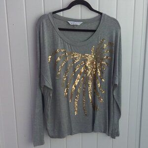 Trina Turk LA Women's Top Knit Gray Gold Sequin Graphic Large