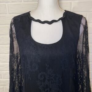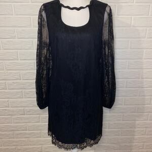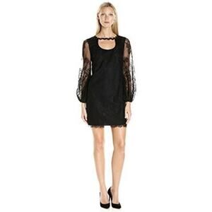 Trina Turk Lace Overlay Mini Dress Cut Out Neckline Sheer Balloon Sleeve Black